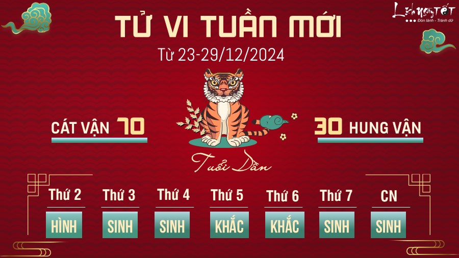 Thiên Cẩu hung tinh nhắc nhở tuổi Dần nên coi trọng sức khỏe của mình. Tốt hơn hết là tránh vướng vào thị phi kẻo mất ăn, mất ngủ, nhất là khi phản ứng của những người trên mạng xã hội rất tiêu cực, có thể dùng những lời độc ác để nhận xét người khác.