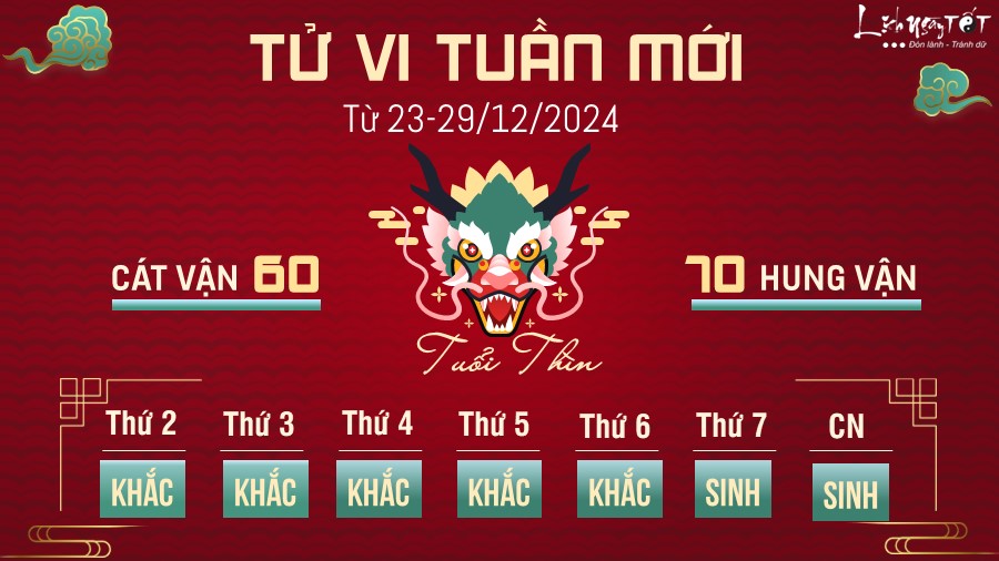 Trong tình yêu, tuổi Thìn được khuyến khích không làm hài lòng mọi người. Cố gắng đặt ra ranh giới chặt chẽ để bạn có thể tận hưởng cuối năm và cả mùa lễ một cách tự do và trọn vẹn.