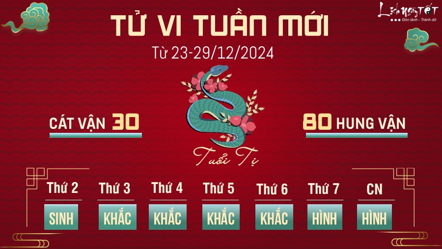 Một số thay đổi có hướng bất lợi thời gian này khiến tuổi Tị nhận ra một số thiếu sót của bản thân. Bạn cũng sẽ phát triển khi nghiên cứu luật theo những cách có liên quan đến cuộc sống của bạn ngay bây giờ. Ví dụ, nếu bạn đang hy vọng mua một ngôi nhà, hãy nghiên cứu luật bất động sản sẽ ảnh hưởng đến bạn, với tư cách là chủ sở hữu và có thể sau này nếu bạn thuê nhà.