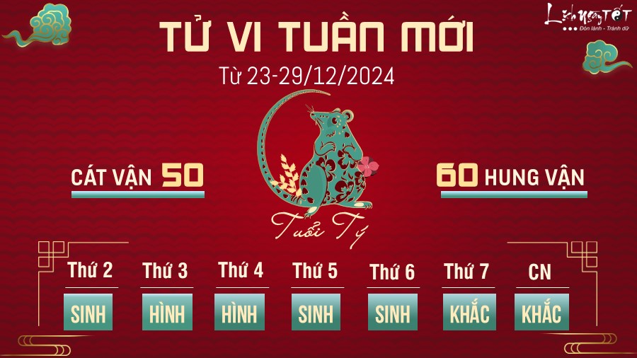 Tuần mới có thể thấy tuổi Tý có nhiều lo sợ, hãy tin vào trái tim mình và bước ra khỏi vùng an toàn. Mỗi chút can đảm sẽ giúp bạn chiến thắng nỗi sợ hãi và đến nơi bạn cần đến. Hãy thể hiện một cách vui vẻ và thoải mái trong mọi mối quan hệ của bạn.