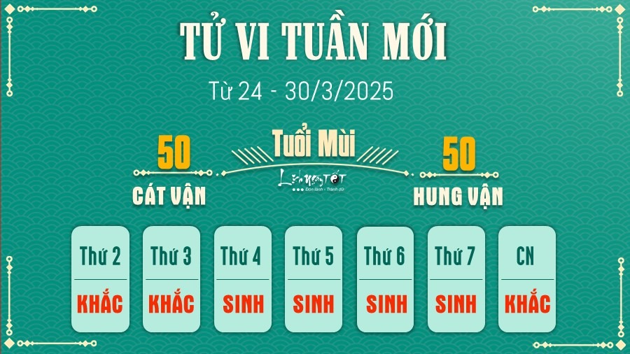 Bước sang tuần mới, người tuổi Mùi có thể phải đối mặt với một số lựa chọn và thách thức đòi hỏi bạn phải có cái nhìn sâu sắc và quyết tâm vững chắc trong tuần này. Nhưng đừng quá lo lắng, thông qua việc lập kế hoạch và điều chỉnh cẩn thận, bạn sẽ có thể biến thách thức thành cơ hội và đạt được sự phát triển và đột phá về mặt cá nhân.