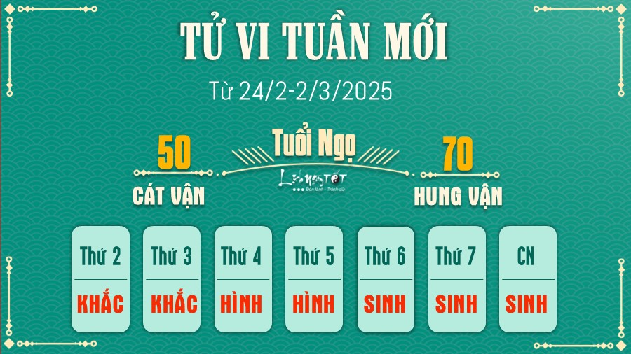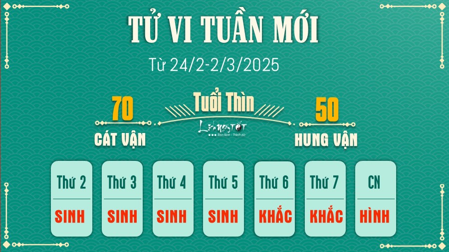 24/02/2025 15:52Tử vi tuần mới của 12 con giáp (24/2-2/3/2025): Tị có lộc, Tuất thuận lợi