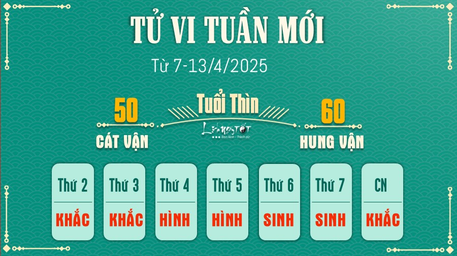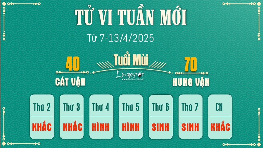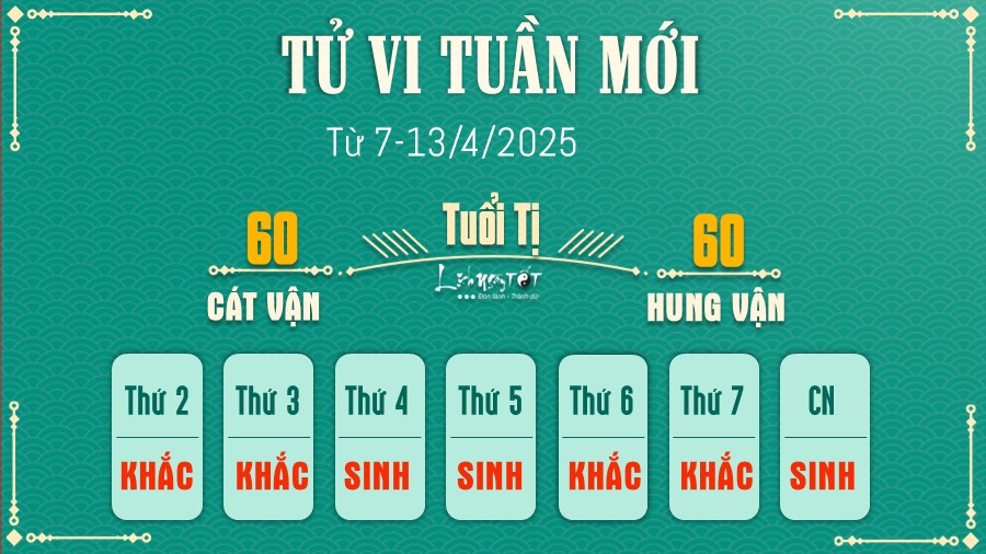 07/04/2025 17:26Tử vi tuần mới của 12 con giáp (7-13/4/2025): Sửu thất vọng, Mùi phát lộc