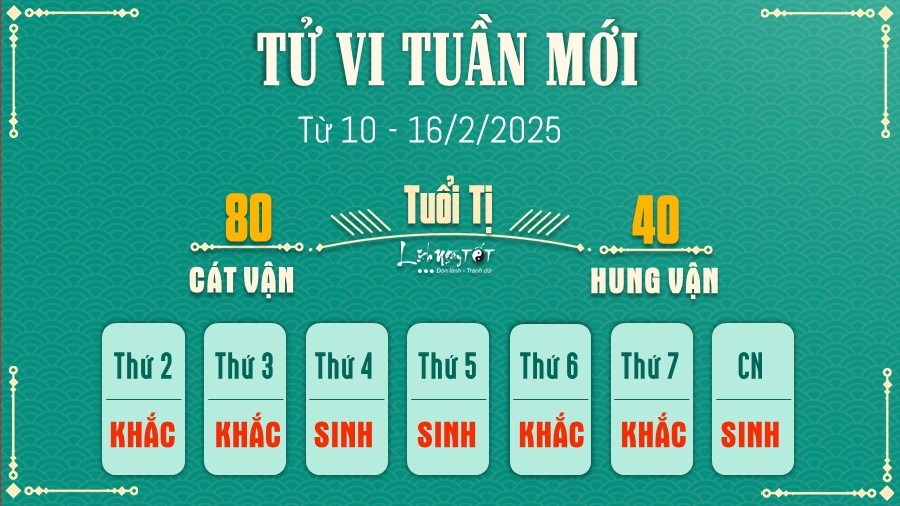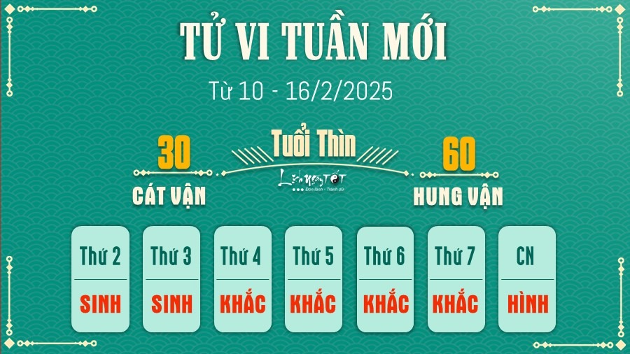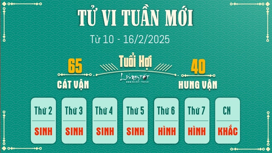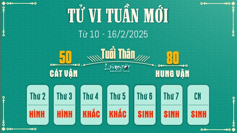 10/02/2025 16:04Tử vi tuần mới của 12 con giáp từ 10 - 16/2/2025: Mão lạc quan, Thân xui xẻo