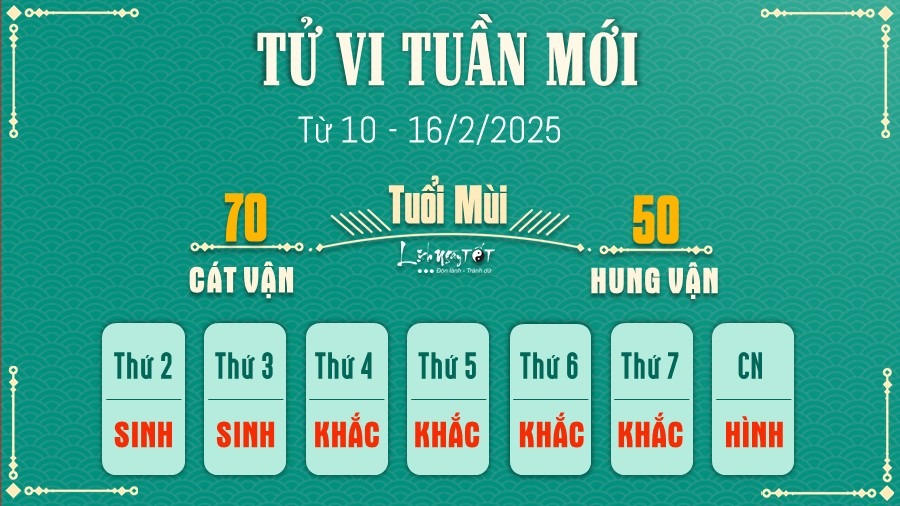 Bước sang tuần mới, vận trình của những người tuổi Mùi có xu hướng ổn định và cải thiện khá nhiều. Thời điểm này, hầu hết bản mệnh đều có thể duy trì thái độ tích cực và tự tin đối mặt với nhiều thử thách khác nhau trong cuộc sống.
