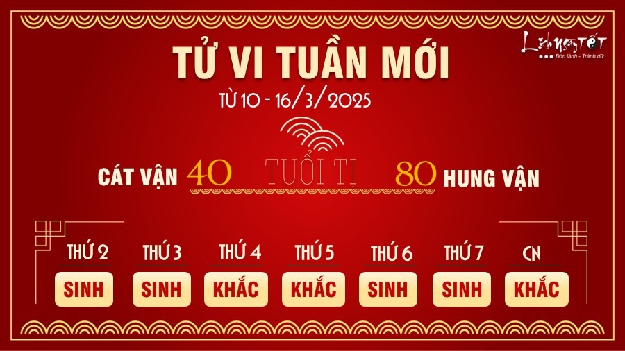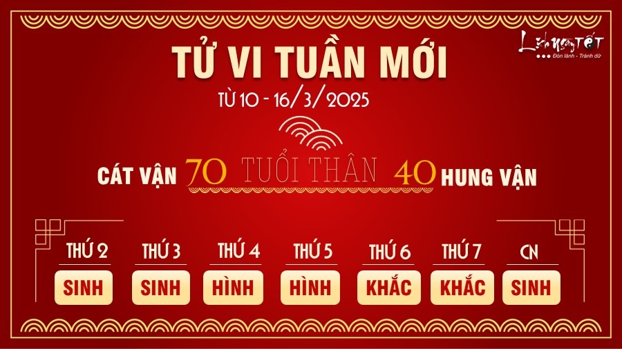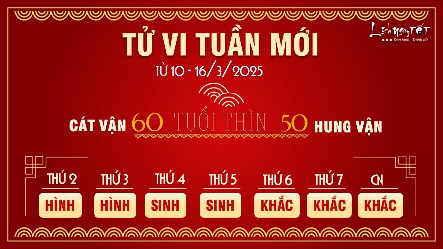 10/03/2025 16:28Tử vi tuần mới của 12 con giáp từ 10-16/3/2025: Sửu nhiều tiền, Dần đa tài đa nghệ