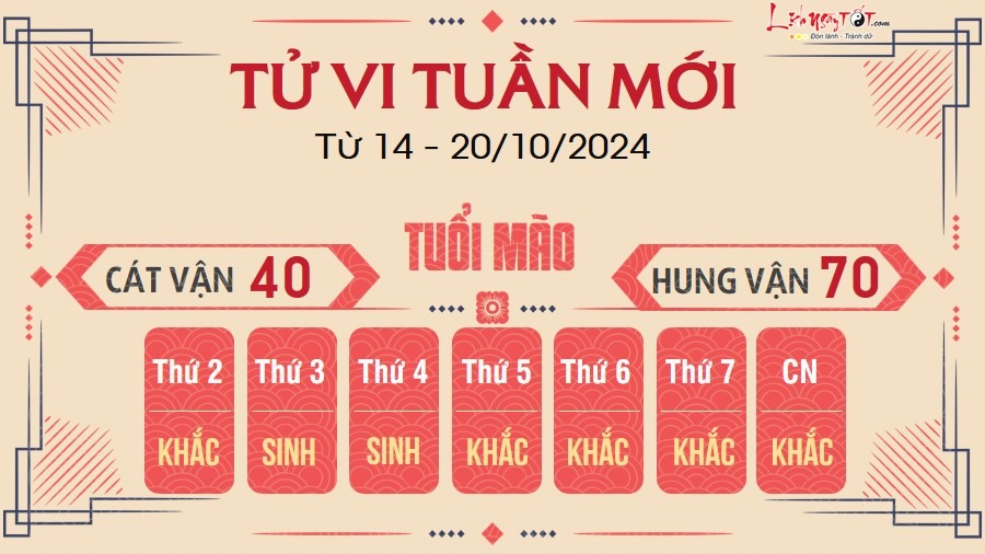 Người tuổi Mão cần chú ý cách hành xử của mình trong tuần này nếu muốn tránh xa rắc rối. Bạn không nên áp đặt ý kiến của mình cho người khác, bắt người khác phải làm theo mong muốn của mình.