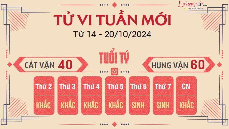 Tử vi tuần mới của 12 con giáp từ 14 - 20/10/2024 thấy rằng phương diện sự nghiệp của người tuổi Tý khá hanh thông trong tuần này. Bạn thường được lãnh đạo nâng đỡ và giao cho những nhiệm vụ quan trọng.