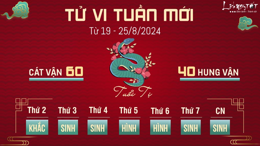 Thương Quan xuất hiện khiến cho nửa đầu tuần của tuổi Tị đầy sóng gió và thử thách. Tâm trạng có thể không vui vì quá nhiều sự việc không như ý xảy ra nhưng hãy luôn nhớ nhắc nhở bản thân rằng: Chuyện gì rồi cũng sẽ qua.