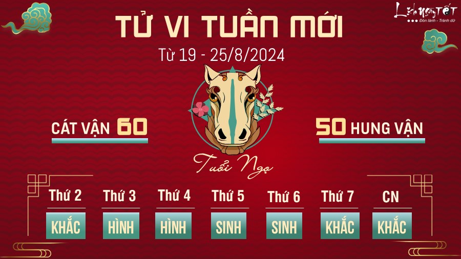 Thực Thần ghé thăm đầu tuần mang lại niềm vui thì tuổi Ngọ cứ thế tận hưởng nhé, nếu những ngày sau không thuận lợi cho lắm thì cứ mỉm cười cho qua. Cuộc sống là vậy, luôn có những thăng trầm mà không phải ai cũng biết trước được.