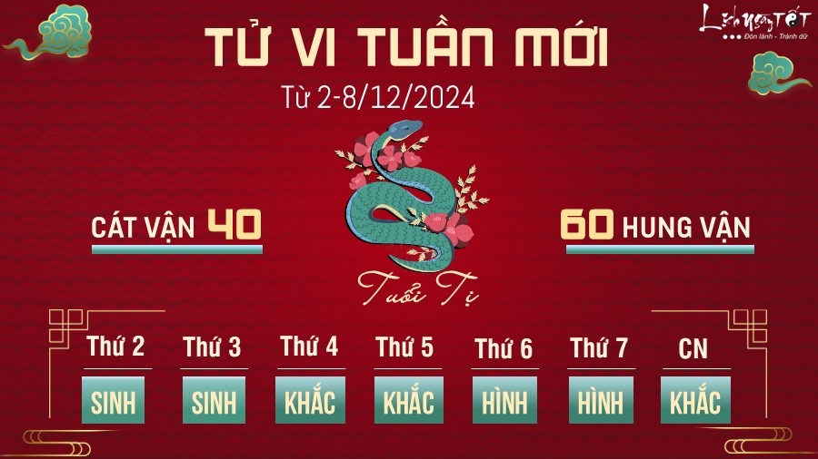 Tử vi tuần mới của 12 con giáp từ 2-8/12/2024, sự nghiệp của tuổi Tị hiện đang trong giai đoạn chuyển đổi, bạn cảm thấy khó khăn với những thay đổi nhưng nhớ rằng khi năng lượng cũ kết thúc trước khi một điều gì đó mới mẻ và tuyệt vời bắt đầu. Chánh niệm là cách để sáng tỏ hơn vấn đề.