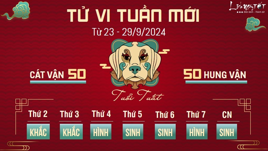 Tuần này, con đường sự nghiệp của người tuổi Tuất phát triển khá hanh thông, thuận lợi. Bạn thể hiện được điểm mạnh của mình đúng lúc đúng chỗ, đồng thời cũng không ngại nhận thêm việc khó để rèn luyện bản thân.