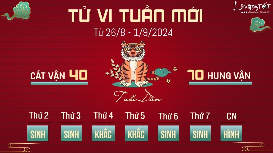 Theo dõi tử vi tuần mới, người tuổi Dần đối mặt với khá nhiều áp lực và thách thức trong cả công việc lẫn tài chính trong tuần này. Dù đã rất chăm chỉ nhưng mọi thứ không phải lúc nào cũng suôn sẻ như những gì bạn muốn.