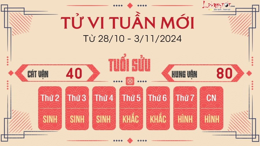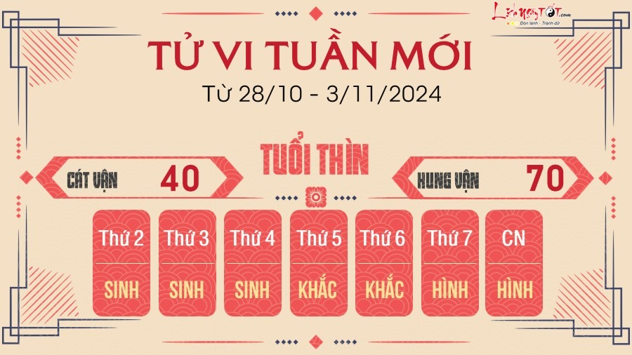 28/10/2024 18:11Tử vi tuần mới của 12 con giáp từ 28/10 - 3/11/2024: Mão khó chịu, Dậu xáo trộn
