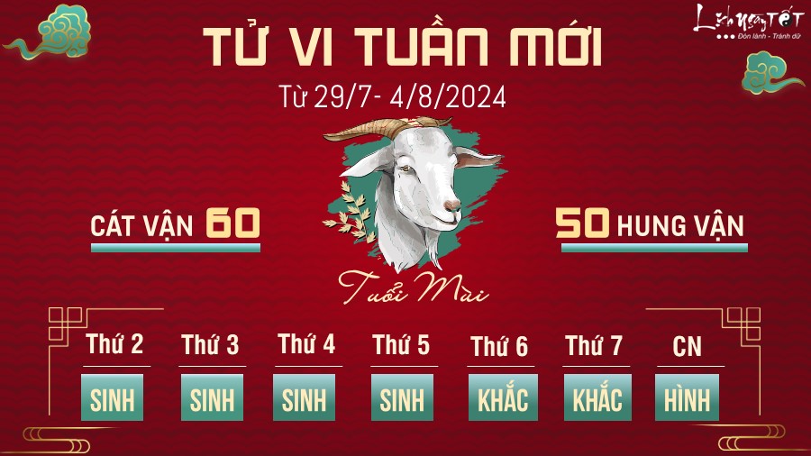 Tử vi tuần mới của 12 con giáp từ 29/7- 4/8, vận trình tình cảm của tuổi Mùi đang trải qua giai đoạn đẹp đẽ, nó cho bạn có cơ hội để lộ những nét đẹp của con người mình như là viên ngọc ẩn nay mới có cơ hội để tỏa sáng. Và điều đó bao gồm việc thành thật với chính mình về những người bạn yêu và những người bạn không yêu.