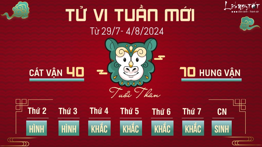 Khi bạn cho người ấy kiểm soát niềm vui nỗi buồn của bạn có nghĩa là bạn đang tự đánh mất sự chủ động của bản thân rồi đấy. Những gì xảy ra trong tuần là để khuyến khích tuổi Thân quay về làm chủ cuộc sống của chính mình, bớt đi sự phụ thuộc.