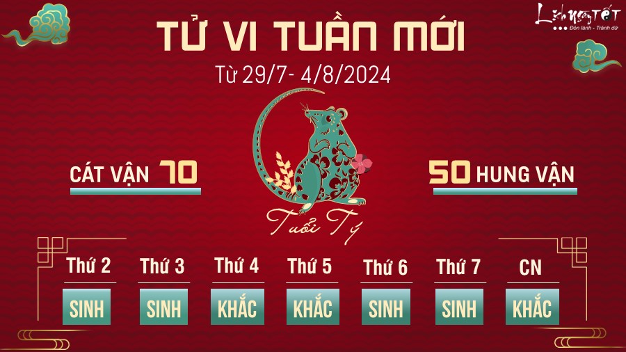 Tuần mới của tuổi Tý khá tốt vì bạn có các lực lượng hỗ trợ vững chắc ở hậu trường, hãy tin tưởng vào những gì bạn đang theo đuổi cho dù hiện tại chưa có kết quả rõ ràng. Đừng để những kẻ phản đối phá hoại niềm tin của bạn.
