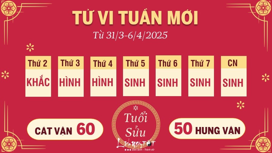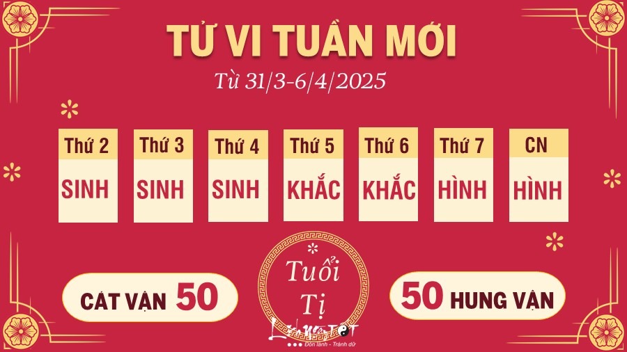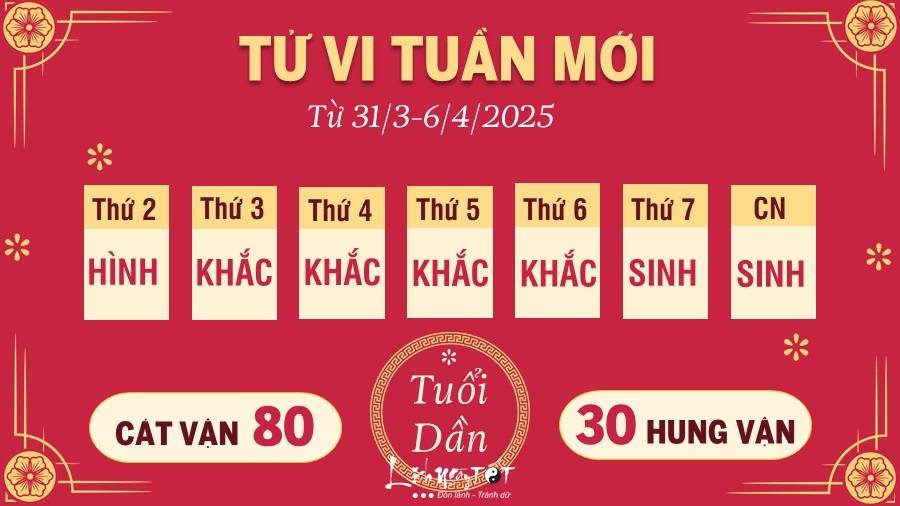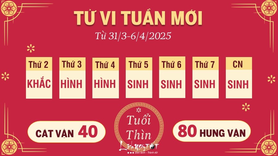 31/03/2025 17:49Tử vi tuần mới của 12 con giáp từ 31/3-6/4/2025: Mùi nhiều may mắn, Thân hay ốm
