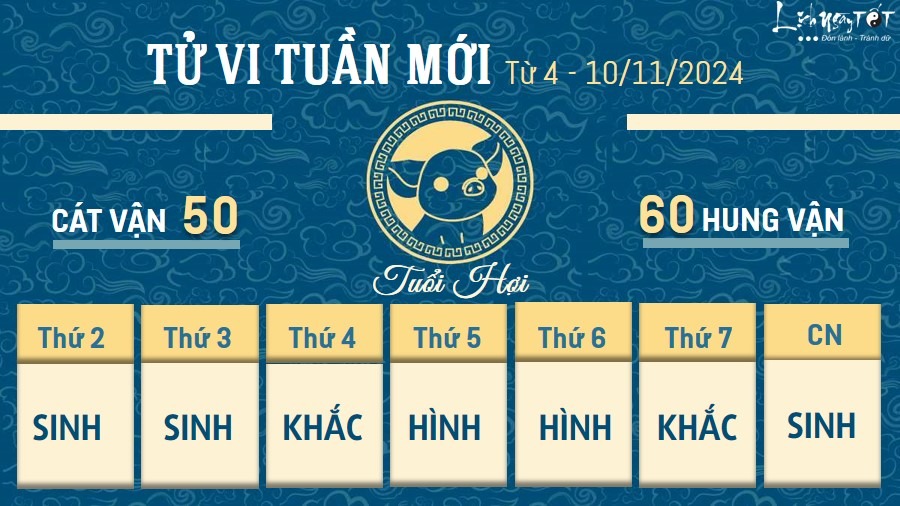 Người tuổi Hợi trải qua một tuần có hung có cát. Dù bạn được cấp trên ưu ái nhưng lại phải chịu sự cô lập của đồng nghiệp xung quanh. Con giáp này cần chú ý cách hành xử để không tự tạo thêm rắc rối cho mình.