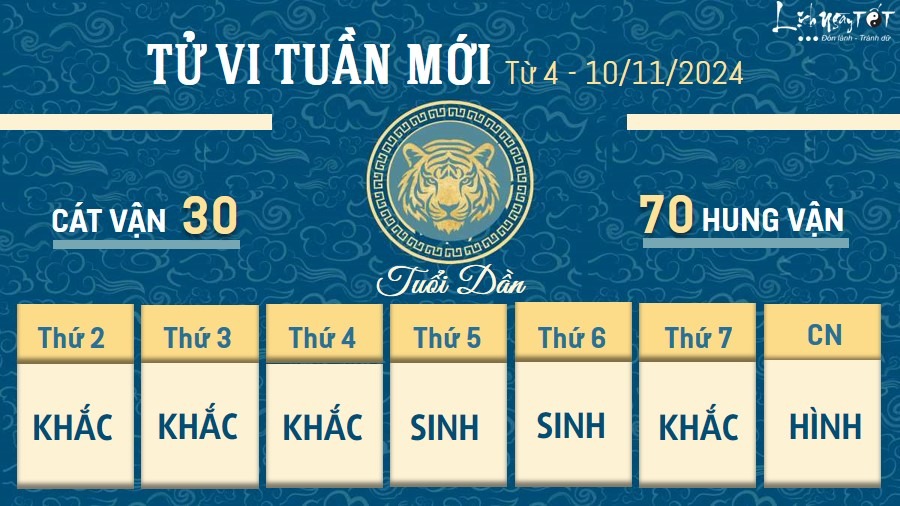 Người tuổi Dần có thể sẽ phải đối diện với khá nhiều khó khăn trong tuần này. Tốt nhất bạn cần chú ý cách hành xử của mình, chớ nên nóng nảy mà làm mất lòng cấp trên, đắc tội với đồng nghiệp xung quanh.