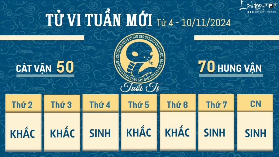 Có thể phương diện sự nghiệp của người tuổi Tị sẽ không được thuận lợi như mong muốn trong tuần này. Dù bạn an phận thủ thường, cố gắng tập trung làm việc nhưng vẫn có thể trở thành đối tượng của kẻ tiểu nhân.