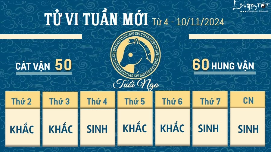 Người tuổi Ngọ cần tìm cách cổ vũ bản thân cố gắng trong tuần này. Nhiều sự cố liên tiếp xảy ra trong công việc khiến bạn cảm thấy chán nản, thậm chí đánh mất niềm tin vào bản thân, song bạn đừng vì thế mà đầu hàng nghịch cảnh. Cứ cố gắng đến cùng thì bạn sẽ thấy ánh sáng cuối đường hầm.