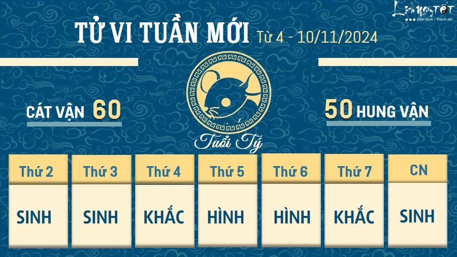 Tuần này là một tuần khá may mắn đối với người tuổi Tý. Tuy bạn sẽ gặp phải một vài khó khăn vào đầu tuần, song đó cũng là cơ hội để bạn khẳng định vị thế của mình.