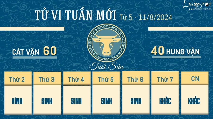 Tử vi tuần mới của 12 con giáp từ 5 - 11/8/2024 cho biết, nhờ có sao Tử Vi nhập mệnh, công việc của tuổi Sửu có phần ổn định hơn so với khoảng thời gian trước. Dù vậy bạn cũng nên thận trọng trong các mối quan hệ xã giao, kẻo có người bằng mặt không bằng lòng.