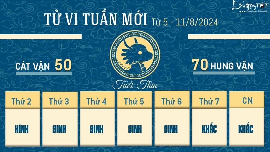 Đường tài lộc nhiều thăng trầm bất định, tuổi Thìn hoàn toàn có thể kiếm được đủ tiền để chi tiêu trong khoảng đầu tuần. Song từ giữa tuần trở đi tài khí dần sa sút, Thiên Quan cảnh báo về họa phá tài, bản mệnh nên chú ý các mối quan hệ xung quanh mình.