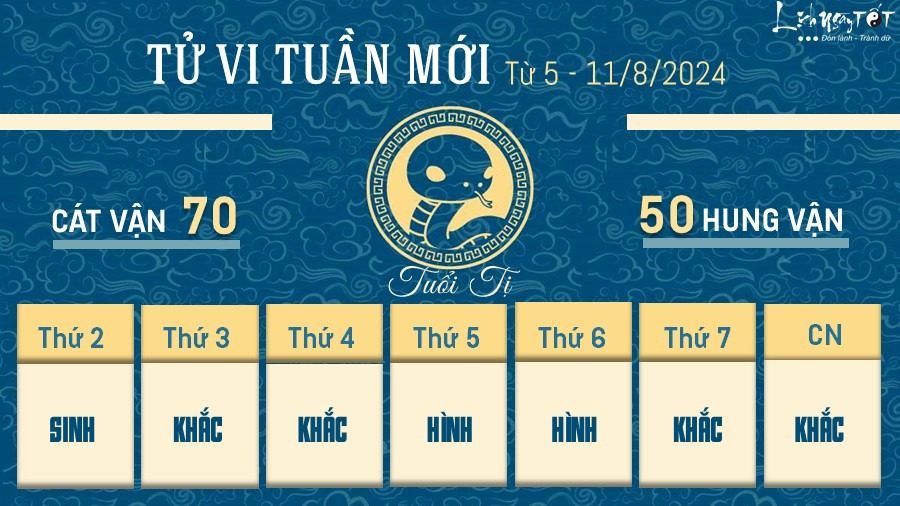 Trong tuần mới, người tuổi Tị đón nhận vận may tình duyên khá tốt nhờ có Thái Âm độ mệnh. Những người độc thân sẽ có cơ hội để bày tỏ tâm tư tình cảm của mình. Bạn có thể dùng sự chân thành và lãng mạn của mình để tạo thêm nhiều điều bất ngờ cho đời sống tình cảm của mình.