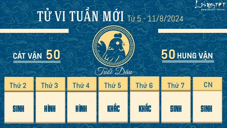 Người tuổi Dậu có một tuần bình ổn. Đầu tuần vẫn còn một vài sóng gió nhưng mức độ không quá nghiêm trọng, nhờ sự tập trung và làm việc nghiêm túc của mình, bản mệnh vẫn kiểm soát được tình hình và duy trì trạng thái ổn định về sau.