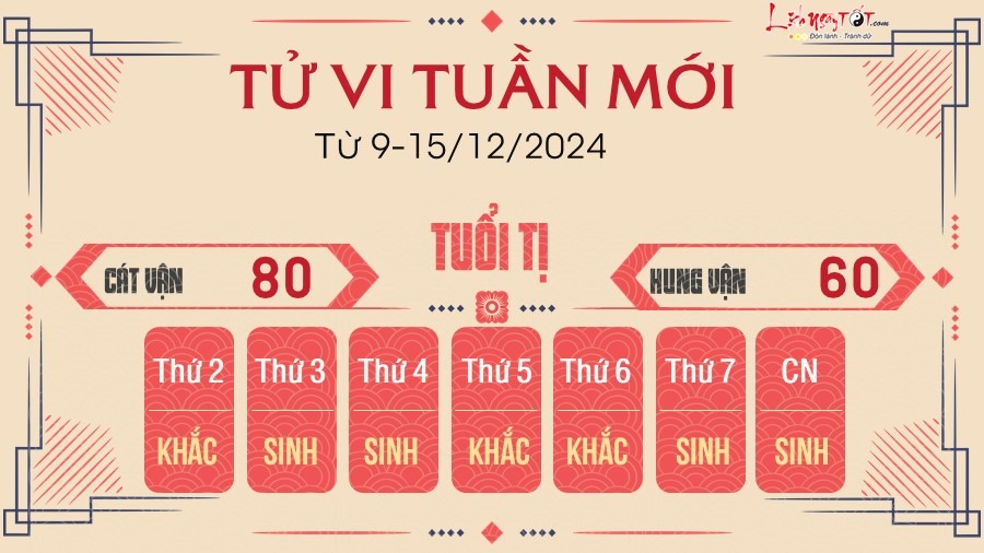 Cát tinh Tử Vi chiếu mệnh báo hiệu nhiều tín hiệu tốt lành trong vận trình của tuổi Tị trong tuần mới, bản mệnh có thể sẽ được quý nhân nâng đỡ, nhờ thế mà có những quyết định đúng đắn trong sự nghiệp, không lo bị vướng phải những sai lầm không đáng có.