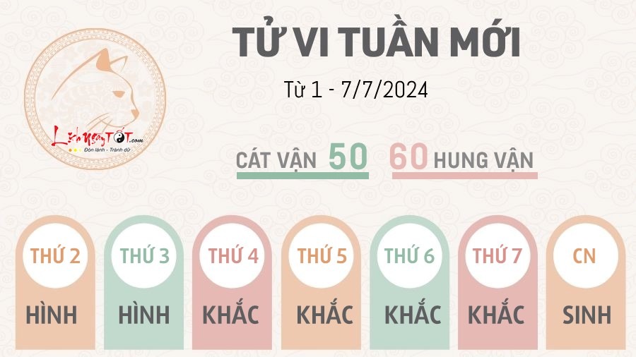 Tuần 1 - 7/7/2024 Mão bị chi phối bởi Thái Âm và Thiên Nguyệt, mọi sự thắng hay bại đều nhờ vào sự tinh tế hoặc nhạy bén của bạn. Nhớ chú ý sức khỏe, làm gì cũng nên chừa cho bản thân một đường lui, dành thời gian nghỉ ngơi.