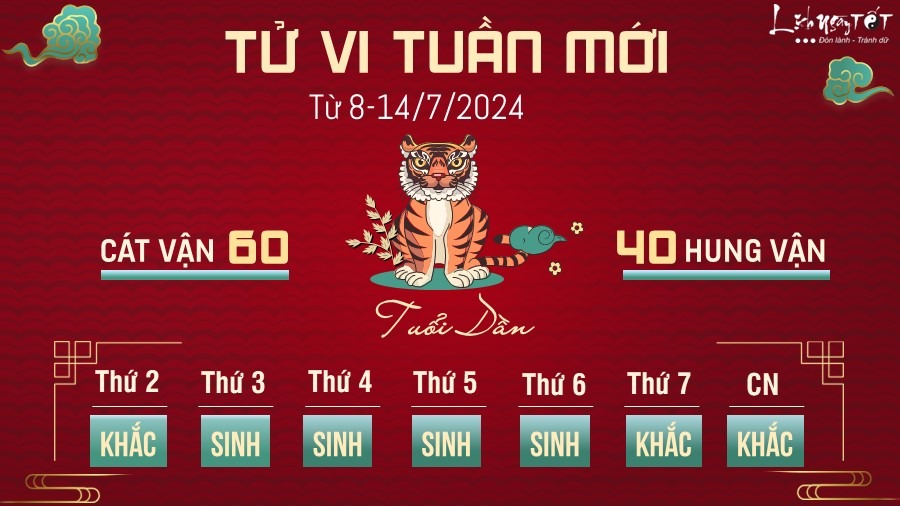 Tuần này đào hoa ghé thăm con giáp tuổi Dần trong thời gian này. Nếu đang có bất hòa với một mối quan hệ thân thiết, đây là lúc nên chủ động bắt đầu những cuộc đối thoại mang tính xây dựng để tìm hướng giải quyết. Đừng cố gắng giữ quan điểm của mình mà hủy hoại mối quan hệ hiện tại.