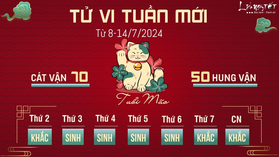 Dự báo một tuần với những tin vui liên quan tới công việc đang đến với tuổi Mão. Nếu đang có mục tiêu thăng tiến, hãy trao đổi với cấp trên của bạn về những thành tựu và kinh nghiệm bạn đã đạt được để tự đề xuất một vị trí tốt hơn.