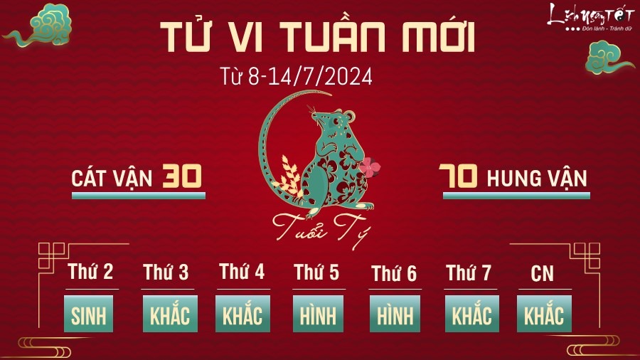 Có thể vận trình tình cảm tuần này chưa được như ý nhưng tuổi Tý đừng quá dồn sự tập trung của mình vào chuyện đó. Bản mệnh nên đào sâu hơn vào các hoạt động cộng tác khác diễn ra trong tuần, nó giúp cuộc sống của bạn nhiều niềm vui hơn và bạn còn nhận ra những giá trị khác ngoài chuyện lứa đôi.