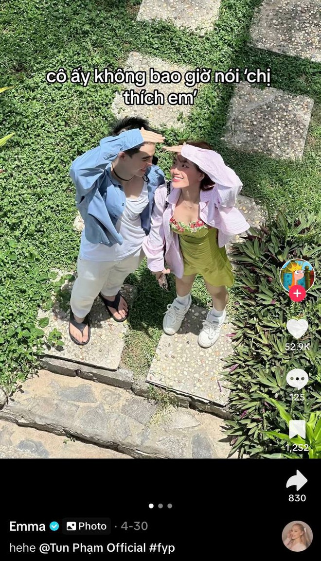 Ngày 1/4, Emma đăng tải bộ ảnh tình tứ cùng Tun Phạm lên TikTok cùng dòng caption “Em chưa bao giờ thực sự thích một ai đó cho đến khi gặp anh”. Tuy nhiên, nhiều người cũng không vội tin, vì ai chẳng biết 1/4 là ngày nói dối.