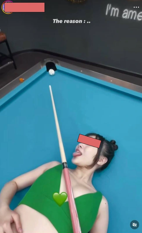 Ấy vậy nhưng mới đây, Linh Chi khiến nhiều người sửng sốt khi tạo dáng trên bàn bi-a theo phong cách có phần... rất phản cảm. Cụ thể, cô nàng nằm ngửa, sử dụng vòng 1 làm bệ đỡ đặt cây cơ trong khi bản thân Linh Chi thì lè lưỡi tạo biểu cảm rất khó hiểu. Tất nhiên, fan của "nữ thần học đường" ngạc nhiên, thất vọng, còn những người tình cờ thấy thì đưa ra không ít bình luận khiếm nhã.