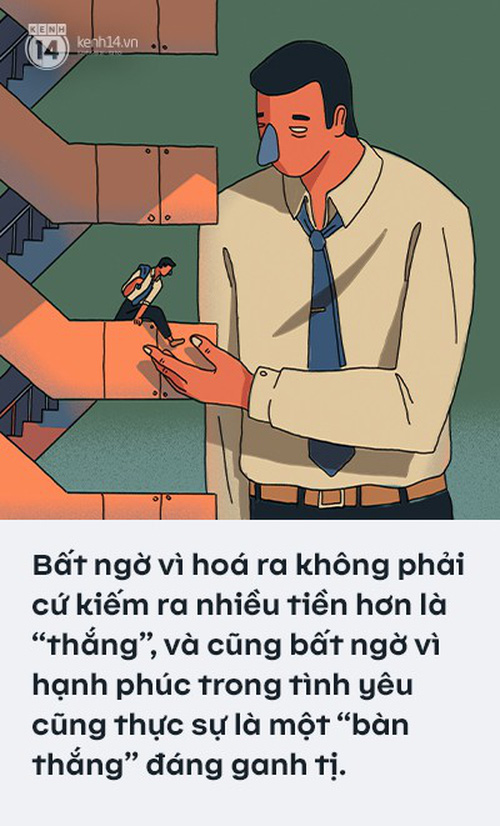 Khi đối diện với những câu hỏi này, mới là lúc tôi thực sự nhận ra mình đang chính thức bước vào giai đoạn trưởng thành đã nói ở trên. Là lúc chúng ta đều cần phải thừa nhận rằng không chỉ cuộc đua năm 20 tuổi đã thay đổi kết quả, mà còn là một thực tế cần chấp nhận: thực sự thì cuộc đua này sẽ không bao giờ kết thúc. Đến năm 30, 35, 40 tuổi, mọi chuyện có thể sẽ lại hoàn toàn khác. Việc mãi mãi nhìn kết quả của người khác sẽ không bao giờ mang lại điều gì có ích, và cuộc đua duy nhất chúng ta cần quan tâm là cuộc đua với chính bản thân mình.