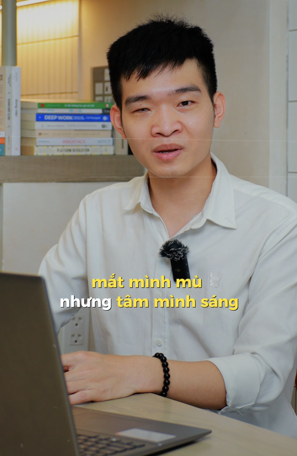 Nhưng giờ ai bảo thằng mù, mình sẽ bảo lại "uh, tôi mù mà". Nói vậy thôi chứ đó là hành trình dài từ chấp nhận đến yêu thương bản thân. Giờ mình coi mắt mù như một đặc tính thật đặc biệt của bản thân vậy đó", Hoàng tâm sự.