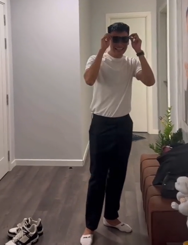 Với chiều cao 1m80, Thành Chung chỉ diện áo phông với quần tây, cầm theo vest trên tay và kéo vali vào khu chung cư đã khiến bà xã Ngô Tố Uyên trầm trồ. Anh còn đeo theo thêm kính râm cho thêm phần ngầu. Nàng WAG còn đặt cho chồng biệt danh "Lee Min Ho Tuyên Quang" và còn có ý định cho Thành Chung lấn sân sang làm diễn viên vì diện mạo bảnh bao như tài tử. Cặp đôi thoải mái khóa môi trong thang máy cho thỏa nỗi nhớ mấy ngày Thành Chung đi xa.