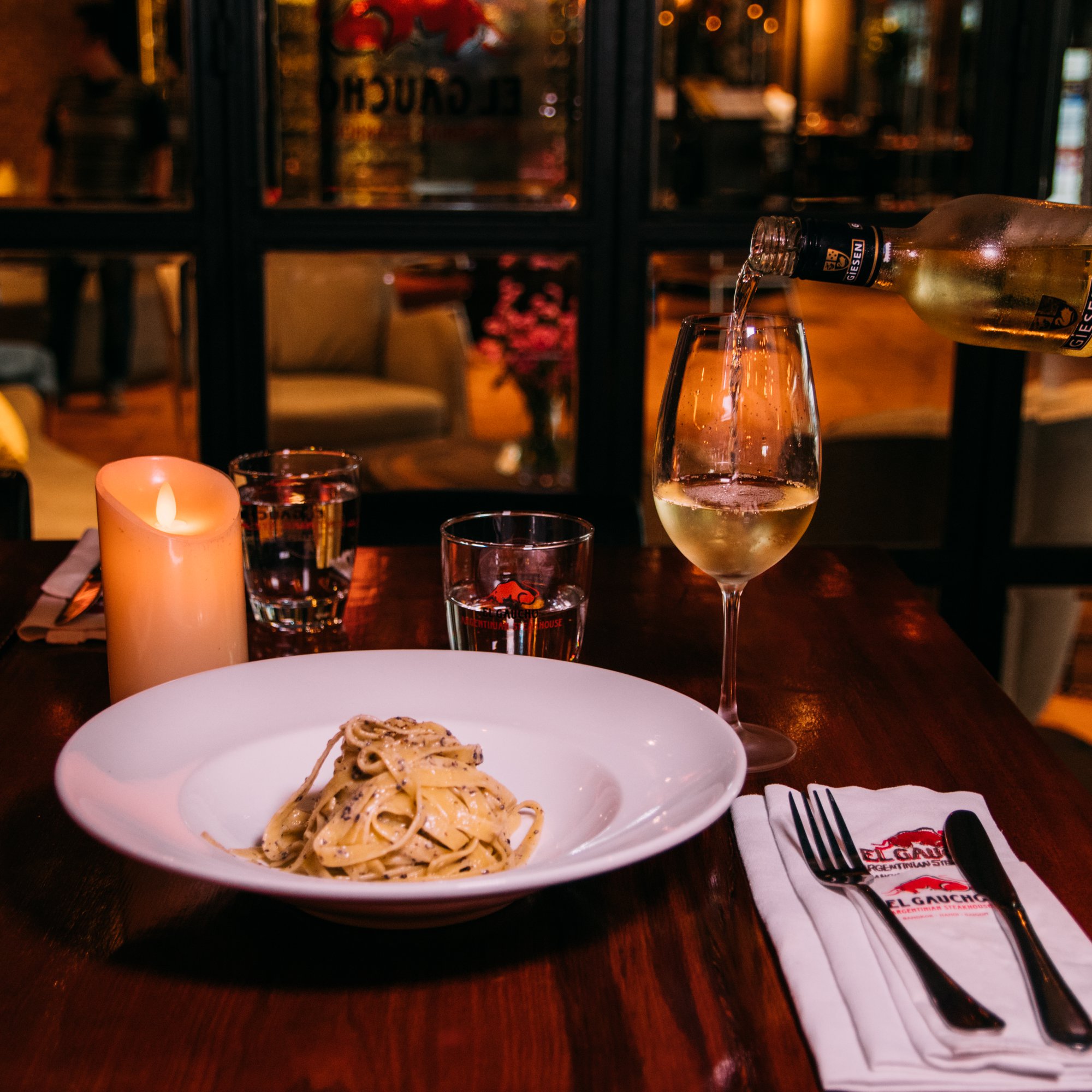 El Gaucho - với set menu Lover's Menu bao gồm món khai vị, rượu vang, món tráng miệng và được tùy chọn giữa Wagyu Filet, Rib Eye Platinum hoặc T-Bone với giá 4,900,000 VND cho 2 người.