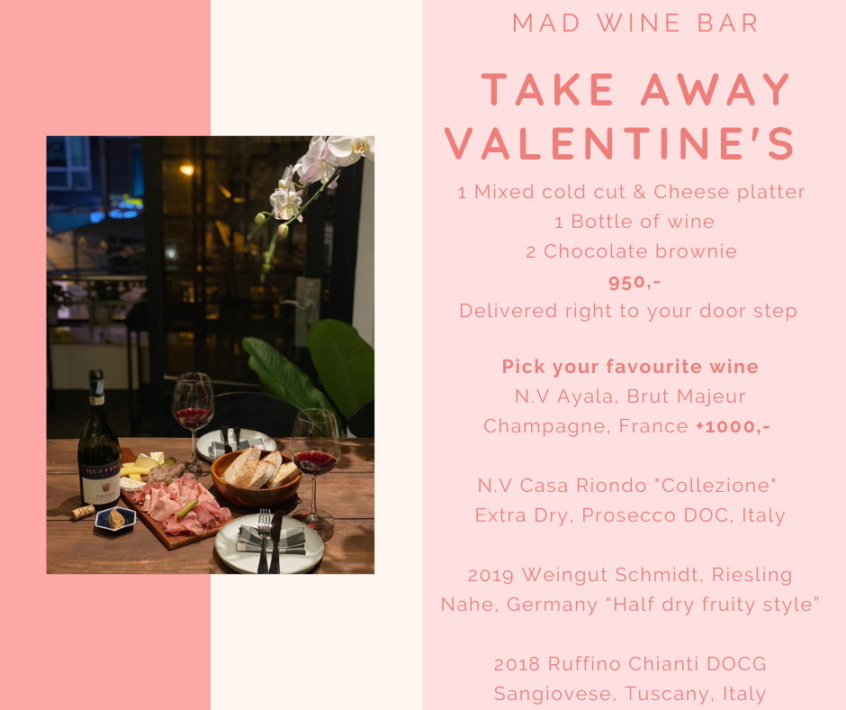 Set menu dành riêng cho Valentine gồm: Hàu Vùng Miyagi, Sốt Giấm Dâu Tây, Thanh Yên & Sâm Panh Đá Bào. Salad Hải Sâm Vùng Miyagi Nhật & Rong Biển, Bào Ngư Ngọc Hổ Úc Nướng Than, Sốt Gan Bào Ngư. Lưỡi Bò Nướng dùng với Gan Ngỗng Pháp & Sốt Dấm Xoài, Cá tuyết nướng, sốt thanh yên đỏ, sò điệp chiên giòn. Thăn Ngoại Bò Wagyu Tajima Vân Mỡ 7 Nướng Than, Sốt Nấm Truffle. Khoai Tây Nghiền dùng với Nấm Truffle Tươi Mùa Đông. Bánh Sô Cô La, Thạch Dâu Tây & Kem Dâu Tây.