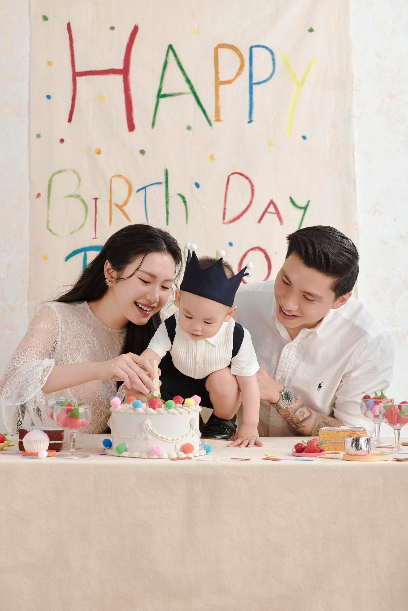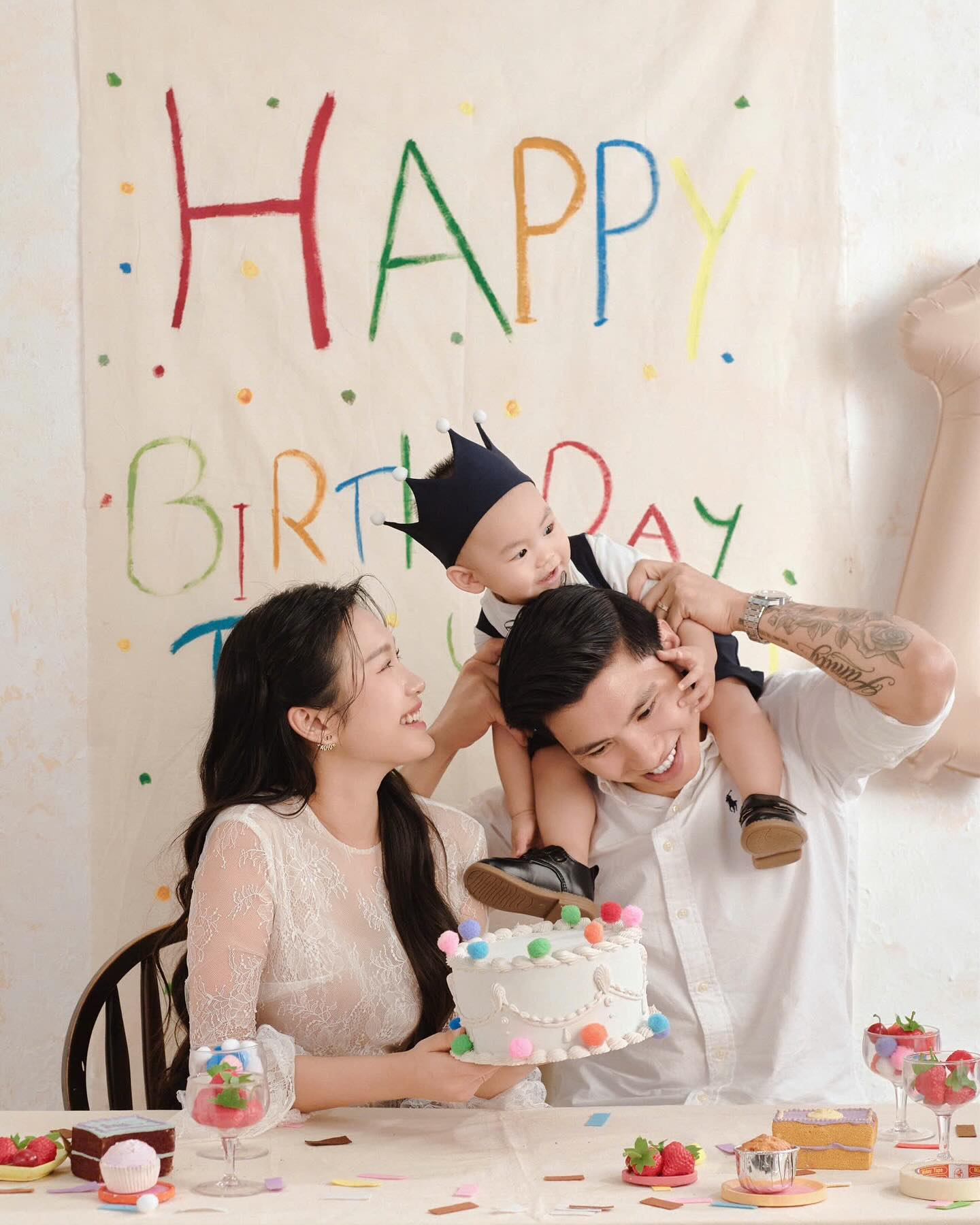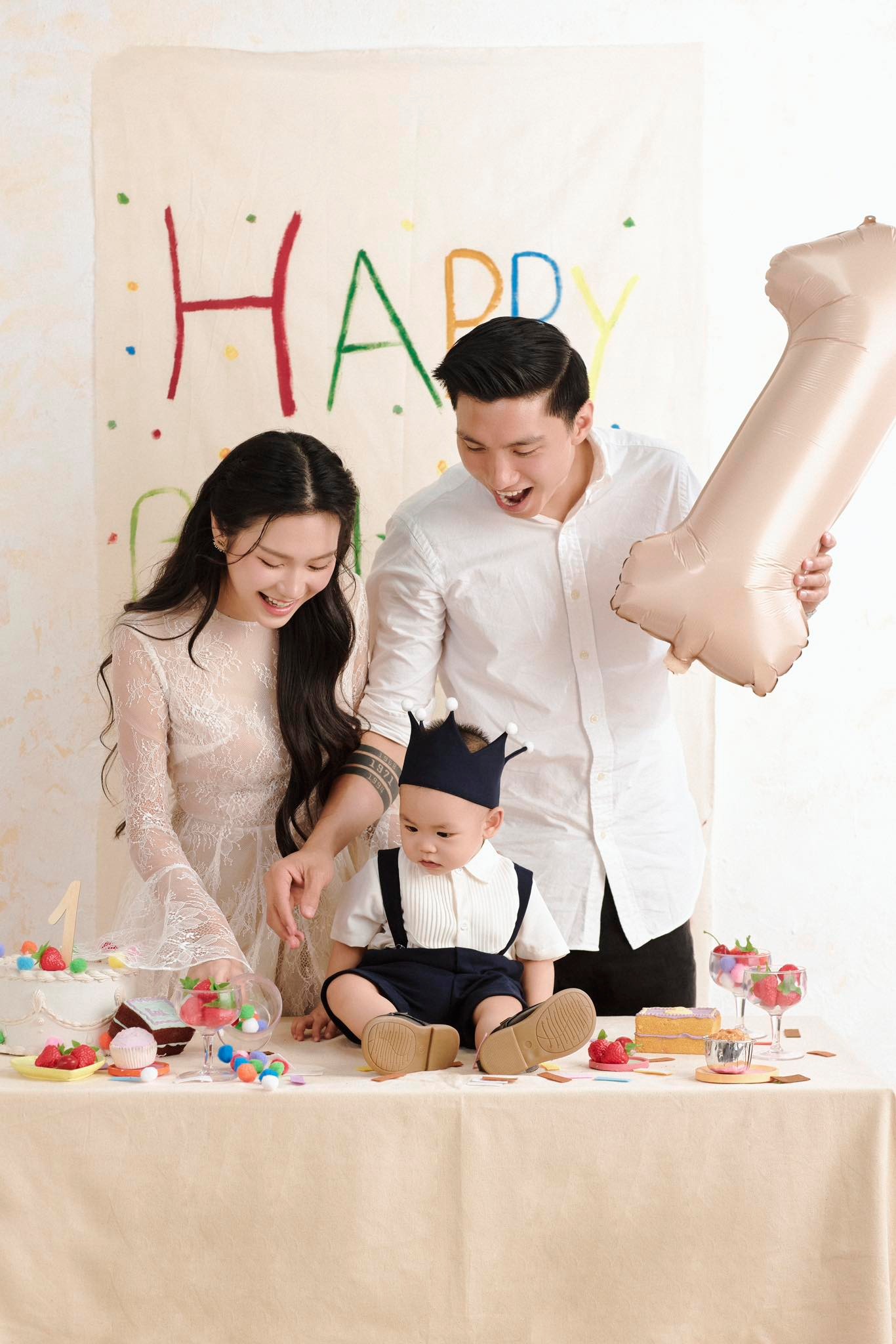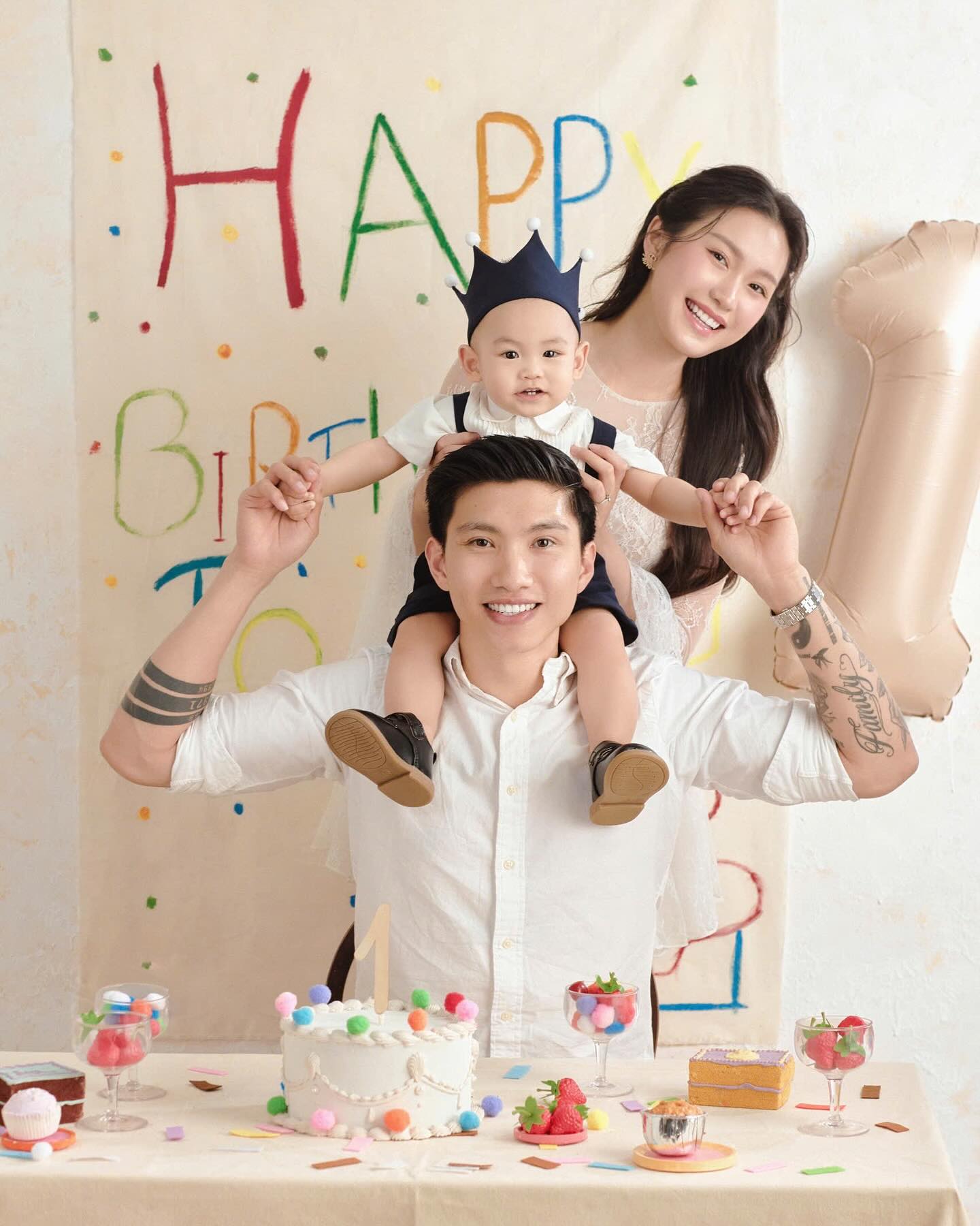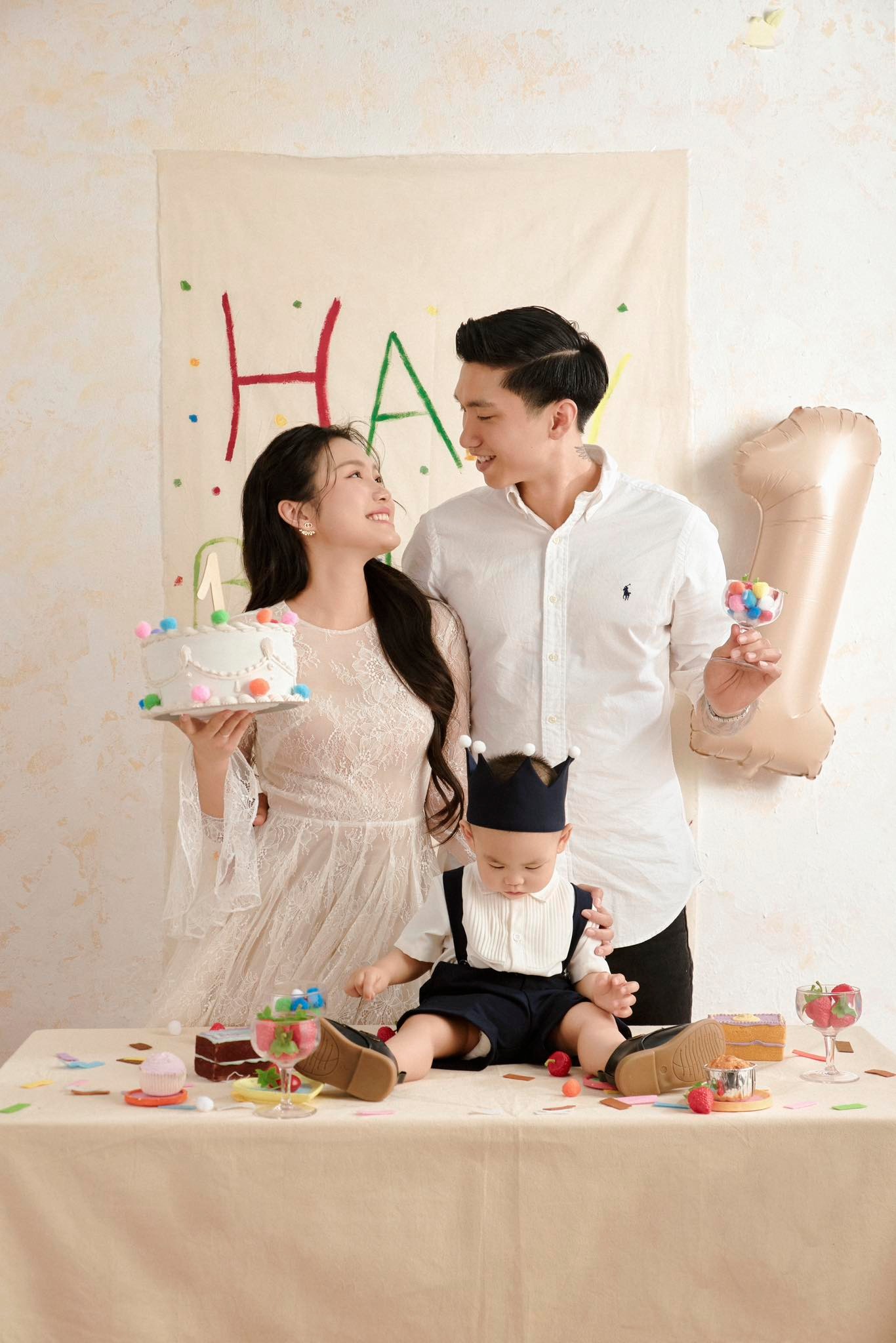 Chiều 2/5, hậu vệ Đoàn Văn Hậu và bà xã Doãn Hải My cùng tung ra bộ ảnh nét căng nhân dịp sinh nhật một tuổi của cậu con trai đầu lòng Đoàn Minh Đăng (biệt danh bé Lúa). Trong ảnh, vợ chồng Đoàn Văn Hậu tổ chức tiệc sinh nhật rộn ràng cho bé Lúa. Đoàn Văn Hậu mặc áo sơ mi trắng giản dị, nở nụ cười hiền lành, vóc dáng cao lớn toát lên vẻ mạnh mẽ xen lẫn yêu thương ngập tràn ánh mắt, nụ cười dành cho bà xã xinh đẹp và cậu quý tử kháu khỉnh.