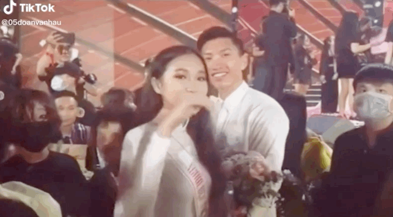 Thế nhưng, những ngày vừa qua cũng là khoảng thời gian mà tin đồn Văn Hậu hẹn hò Doãn Hải My - thí sinh Hoa hậu Việt Nam 2020 gây xôn xao MXH nhất. Cặp đôi liên tục bị soi bằng chứng yêu đương như thả tim ảnh nhau, đăng status giống nhau hay style sử dụng icon trái tim giống màu trang phục... Trong đêm Chung kết vừa qua, Văn Hậu còn không ngần ngại xuất hiện trên sân khấu để tặng hoa và một cái ôm an ủi cho người đẹp khi cô bỏ lỡ ngôi vị cao nhất.