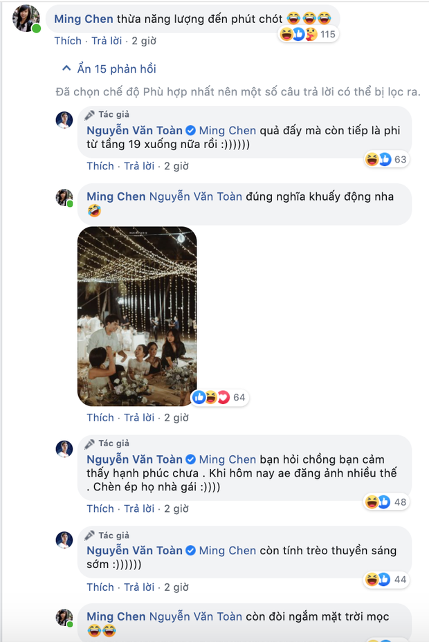 Về phần mình, Văn Toàn tự nhận thấy mấy hôm nay mình đã đăng nhiều ảnh liên quan đến đám cưới quá. Anh còn tận dụng story Facebook để khoe thêm ảnh vui cười và giật tít: "Nghi vấn Văn Toàn thuê ekip đi chụp ảnh riêng ở đám cưới Công Phượng". Bởi anh chàng ta có nhiều ảnh sống ảo quá mà. Văn Toàn còn lo lắng kiểu "Đi đám cưới bạn toàn sợ đẹp trai hơn chú rể... Buồn".