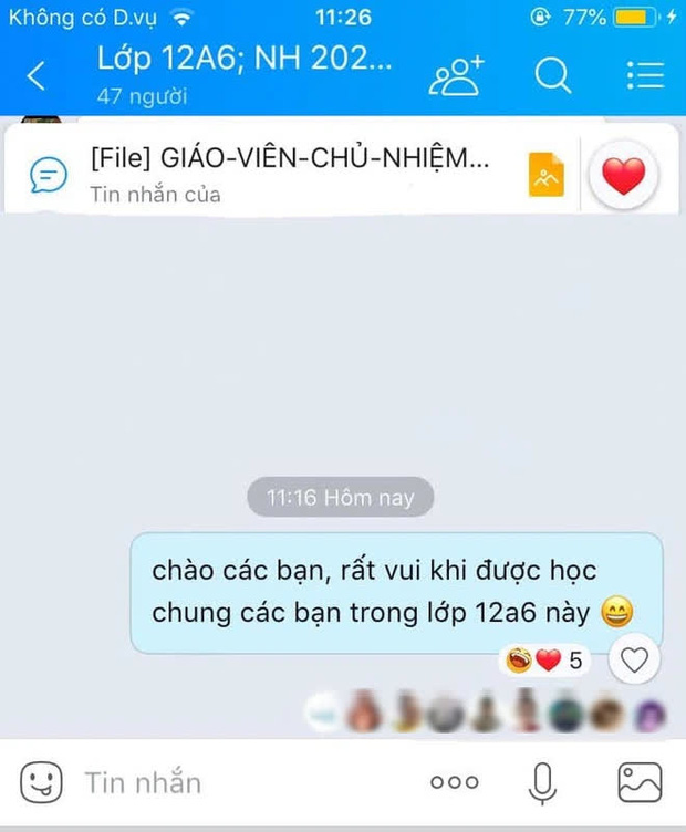 Nhưng rõ ràng việc bước vào lớp mới, môi trường mới chưa bao giờ là điều dễ dàng. Một nam sinh mới đây đã chia sẻ câu chuyện éo le của mình. Vừa vào lớp, cậu bạn đã muốn gây thiện cảm nên đã nhắn tin làm quen trong nhóm chat chung: "Chào các bạn, rất vui khi được học chung các bạn trong lớp 12A6 này".