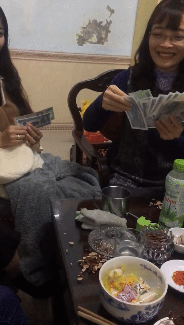 Theo đó, nhóm bạn học sinh này đã đến nhà chúc Tết cô giáo chủ nhiệm cũ. Có thể thấy, cô giáo rất vui vẻ, nở nụ cười tươi rói khi ngồi cùng các học trò của mình. Cô giáo còn cầm trên tay tập tờ tiền 500.000 đồng và 5.000 đồng mừng tuổi cho từng học sinh.