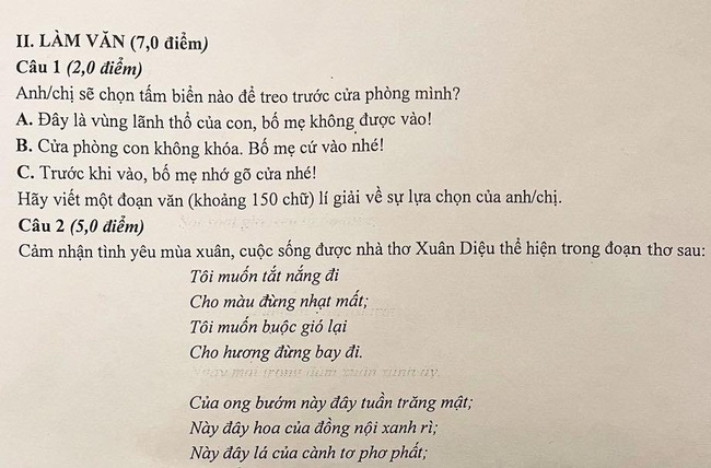 25/03/2021 18:20Vì sao chuyện 'tấm biển treo trước cửa phòng riêng của con' trong đề thi Ngữ Văn lớp 11 lại gây tranh cãi gay gắt trên MXH?