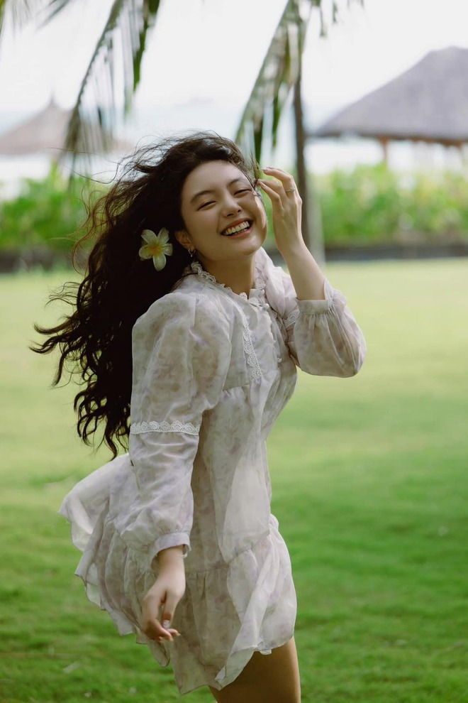 Trong bộ ảnh mới, bé Suti diện một chiếc váy hoa kiểu dáng babydoll trẻ trung và xinh xắn. Cô bé thả dáng cực kỳ tự nhiên trước ống kính máy ảnh.
